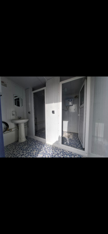 کانکس دوچشمه سرویس و حمام راهرودار می باشد ، دارای تجهیزات کامل شامل آینه جامایع برق کشی لوله کشی سرد و گرم